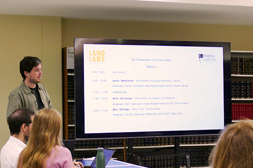 On Wednesday, the Landlabs team welcomed experts from five of the six disciplines: Inês Afonso Lopes (aesthetics), Virgílio Borges Pereira (sociology), Alexandre Lima (geology), João Honrado (ecology) and Paulo Castro Seixas (anthropology). Each doctoral candidate presented their current work on the link between a particular theory and their landscape laboratory site. This included their research objectives and questions, followed by feedback from the experts and the rest of the group.